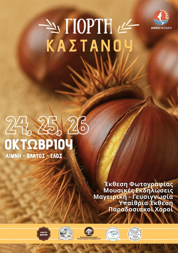 θα πραγματοποιηθεί η Τριήμερη Γιορτή Κάστανου στη Δημοτική Ενότητα Ιναχωρίου.