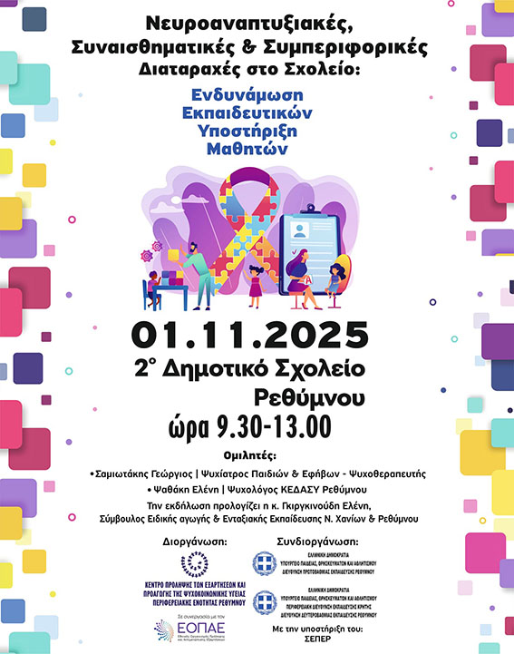 «Νευροαναπτυξιακές, Συναισθηματικές και Συμπεριφορικές Διαταραχές στο Σχολείο: Ενδυνάμωση Εκπαιδευτικών – Υποστήριξη Μαθητών».