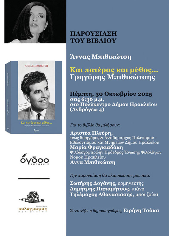 στις 18:30, στο Πολύκεντρο του Δήμου Ηρακλείου, στο κέντρο της πόλης.