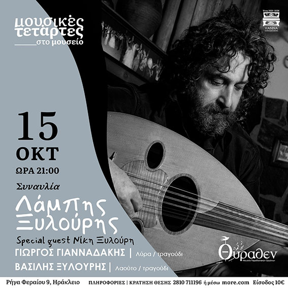 όπου ο Λάμπης Ξυλούρης θα παρουσιάσει μια βραδιά αφιερωμένη στις παραδοσιακές μελωδίες και τους ήχους της Κρήτης.