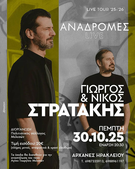 στο κέντρο «Αναδρομές Live» στις Αρχάνες, σε διοργάνωση του Πολιτιστικού Συλλόγου Μελεσών.