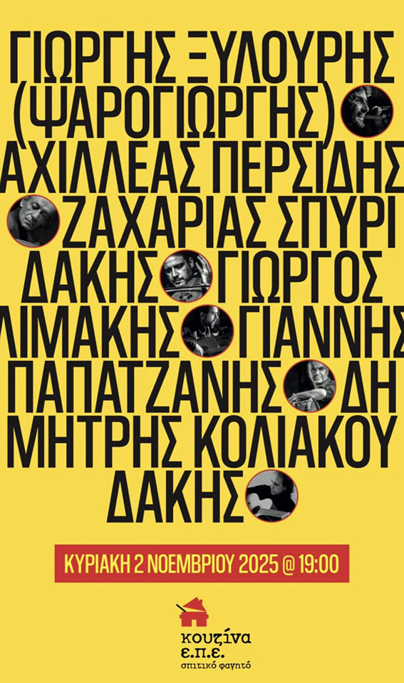 Η βραδιά θα ταξιδέψει το κοινό μέσα από τη δύναμη του αυτοσχεδιασμού, τον διάλογο των οργάνων και τη βαθιά συναισθηματική φόρτιση που χαρακτηρίζει τη μουσική του Ψαρογιώργη και των συνοδοιπόρων του. Η Κουζίνα ΕΠΕ, με το αυθεντικό της περιβάλλον και τις γεύσεις του σπιτικού φαγητού, θα αποτελέσει το ιδανικό σκηνικό για μια βραδιά γεμάτη ήχους, παρέα και κρητική ψυχή.