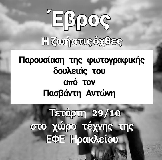 στις 19:30, στη Δουκός Μποφώρ 20, στο Ηράκλειο Κρήτης, τη φωτογραφική δουλειά του Αντώνη Πασβάντη με τίτλο