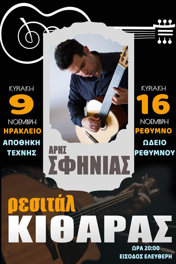 Μια ιδιαίτερη μουσική εμπειρία περιμένει τους φίλους της κιθάρας και της κλασικής μουσικής, σε δύο ξεχωριστές βραδιές με ελεύθερη είσοδο για το κοινό. Ο Άρης Σφηνιάς θα πραγματοποιήσει ρεσιτάλ κλασικής κιθάρας, την