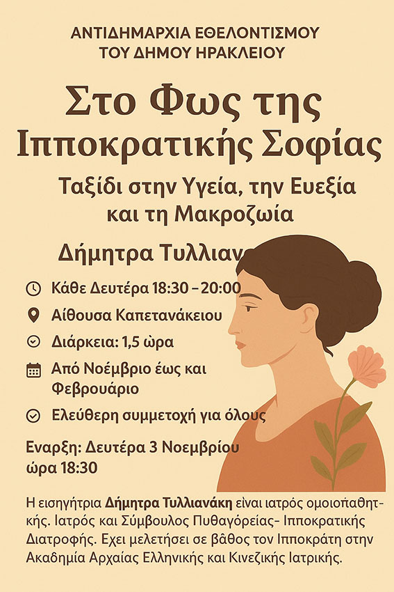 Νέο σεμινάριο με τίτλο «Στο Φως της Ιπποκρατικής Σοφίας-Ταξίδι στην Υγεία, την Ευεξία και τη Μακροζωία» ξεκινάει τη