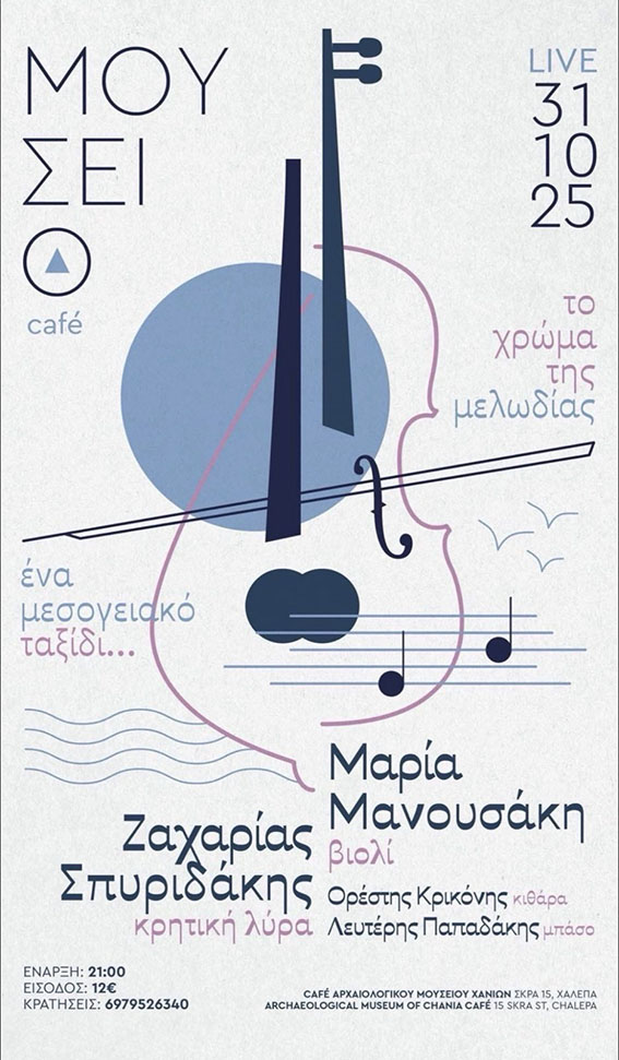 Το μοναδικό ακουστικό περιβάλλον του Καφέ του Αρχαιολογικού Μουσείου Χανίων προσφέρει το ιδανικό σκηνικό για έναν διαπολιτισμικό μουσικό διάλογο, που θα λάβει χώρα την