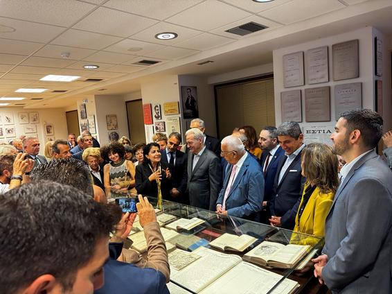 Στη συνέχεια πραγματοποιήθηκε ξενάγηση στην έκθεση των ιστορικών κειμηλίων του έργου του Δημήτριου Βικέλα από την Προϊσταμένη της Μπενακείου Βιβλιοθήκης και Επιστημονικής Επιμελήτριας της έκθεση Δρ Μαρία Βλασσοπούλου, την οποία παρακολούθησαν με πολύ μεγάλο ενδιαφέρον οι παρεβρισκόμενοι.