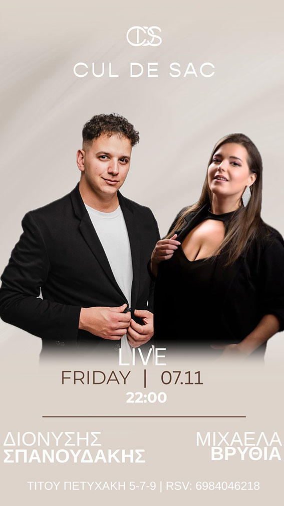 Οι δύο καλλιτέχνες θα εμφανίζονται κάθε Παρασκευή στο Cul De Sac, υπογράφοντας ένα πρόγραμμα που θα αποτελέσει σημείο αναφοράς για τη νυχτερινή διασκέδαση του Ρεθύμνου αυτόν τον χειμώνα.