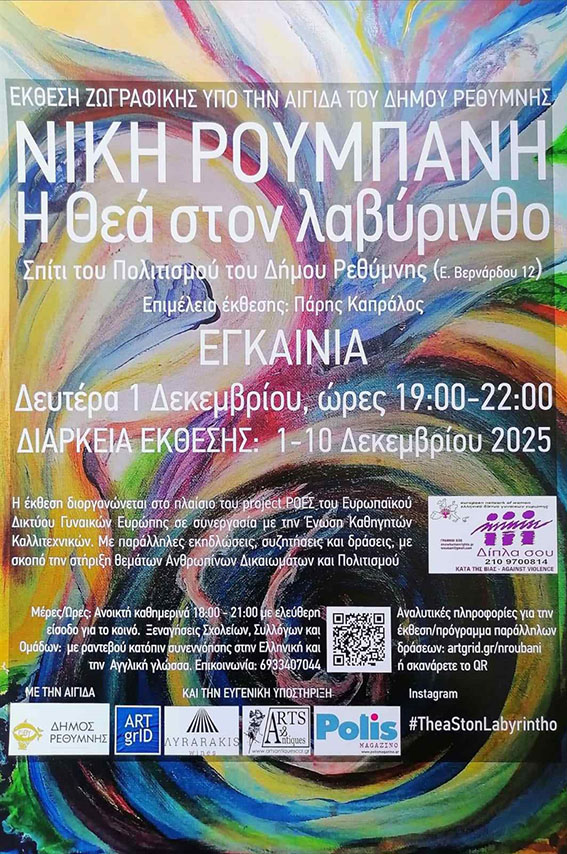 στο Σπίτι του Πολιτισμού (Ε. Βερνάρδου 12) στο Ρέθυμνο. Τα εγκαίνια θα πραγματοποιηθούν τη