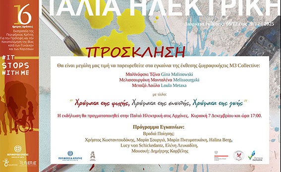 Η δράση εντάσσεται στις 16ημερες Δράσεις της Περιφέρειας Κρήτης για την Πρόληψη και την Αντιμετώπιση της Βίας κατά των Γυναικών και των Κοριτσιών.