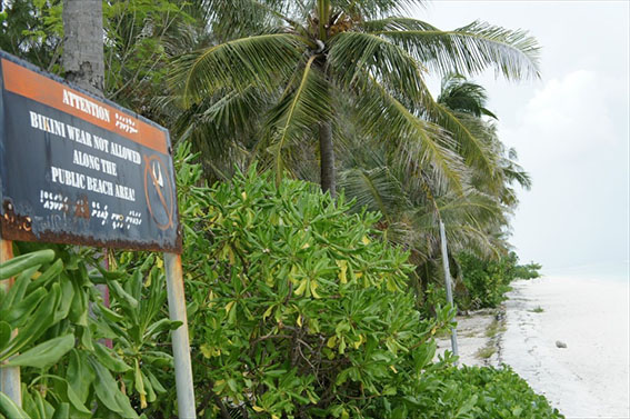 Μόλις κανά χρόνο πριν η χώρα είχε αρχίσει να υποδέχεται και backpackers. Αυτό σήμαινε ότι οι τουρίστες μπορούσαν πια να επισκεφθούν νησιά όπου ζούσαν ντόπιοι και όχι μόνο τα resort-islands. Αυτό που δεν ξέραμε, όμως, ήταν πως στα νησιά των ντόπιων ήταν παράνομο για τις γυναίκες να κολυμπούν με μαγιό και ότι απαγορευόταν η πώληση και κατανάλωση αλκοόλ.