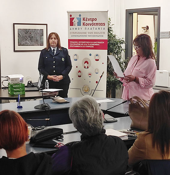 η ομιλία για την ενδοοικογενειακή βία που διοργάνωσε το Κέντρο Κοινότητας Δήμου Πλατανιά σε συνεργασία με την Αστυνομική Διεύθυνση Χανίων και ομιλήτρια την Υπαστυνόμο Α΄ κα Βιγλάκη Ελένη, προϊσταμένη του γραφείου της ενδοοικογενειακής βίας.