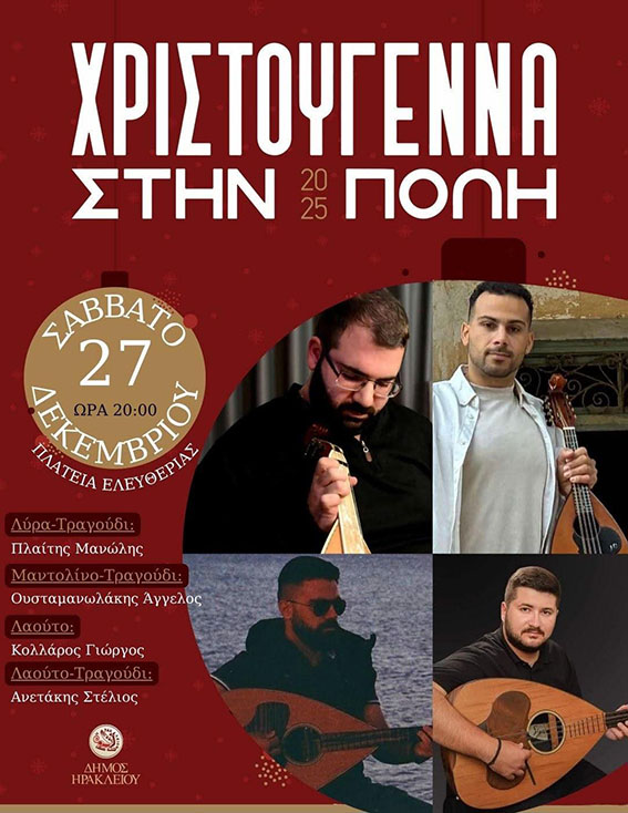 Μια ημέρα αφιερωμένη στην ελληνική και κρητική παράδοση, που προσφέρει στο κοινό την ευκαιρία να ζήσει το πνεύμα των Χριστουγέννων μέσα από τον λόγο, τον ήχο και τη ζωντανή παρουσία των καλλιτεχνών.