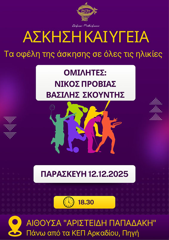 Μια ιδιαίτερα σημαντική εσπερίδα με θέμα «Άσκηση και Υγεία: Τα οφέλη της άσκησης σε όλες τις ηλικίες» θα πραγματοποιηθεί την