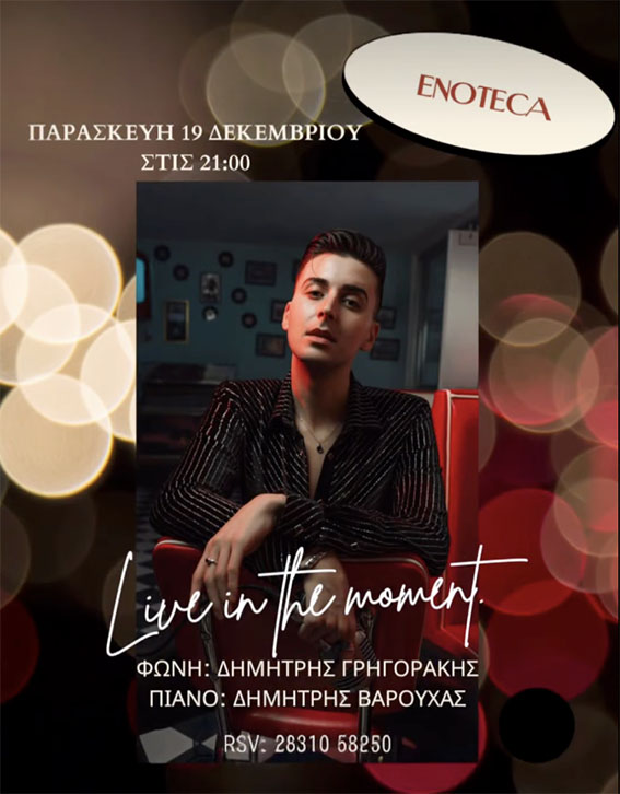 Η «Οινοθήκη», με τη ζεστή της αύρα και τον οικείο χαρακτήρα της, γίνεται το ιδανικό σκηνικό για μια μουσική εμπειρία που δεν επιδιώκει να εντυπωσιάσει, αλλά να μείνει. Μια βραδιά για όσους πιστεύουν ότι η μουσική ακούγεται καλύτερα όταν μιλά χαμηλόφωνα και λέει πολλά.
