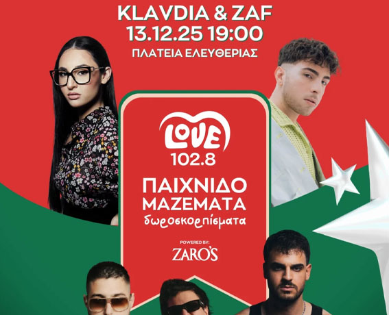 Το Love Radio Κρήτης 102.8 γεμίζει και φέτος την Πλατεία Ελευθερίας στο Ηράκλειο με μουσική, χαμόγελα και προσφορά, μέσα από τη μεγάλη χριστουγεννιάτικη δράση