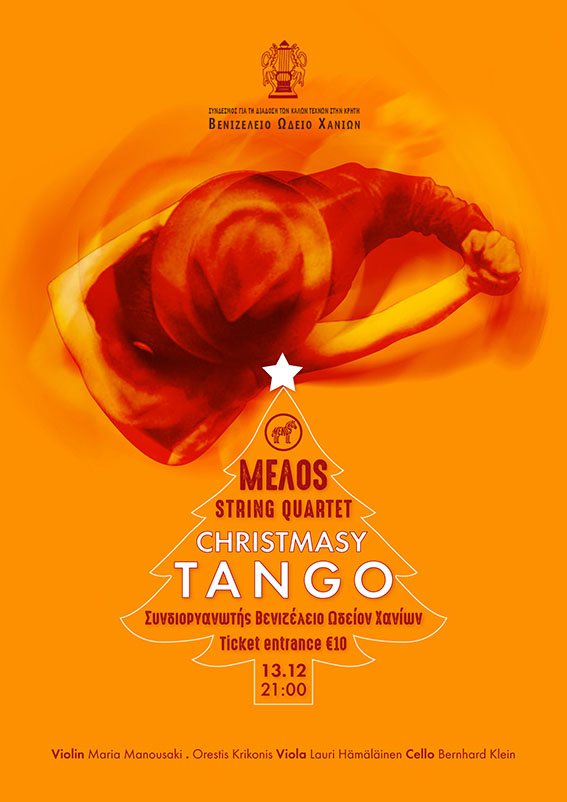 Μια ιδιαίτερη χριστουγεννιάτικη μουσική βραδιά έρχεται να ζεστάνει τα Χανιά, καθώς το MEΛos String Quartet παρουσιάζει το πρόγραμμα «Christmasy Tango», σε συνδιοργάνωση με το Βενιζέλειο Ωδείο Χανίων, το