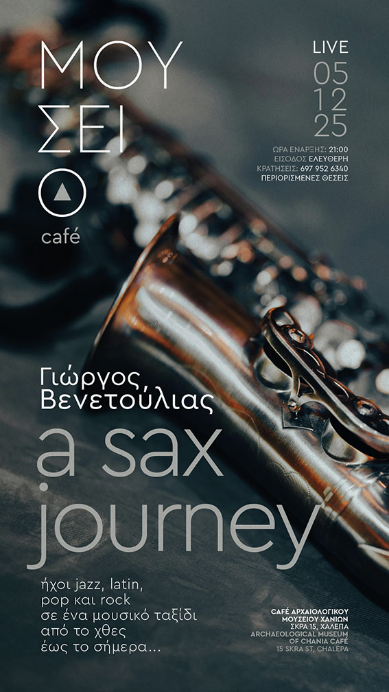 Με τα σαξόφωνά του και το χαρακτηριστικό του ύφος, θα μας ταξιδέψει μέσα από jazz, latin, pop και rock μελωδίες, θυμίζοντας τραγούδια που άφησαν εποχή, αλλά και σύγχρονες μουσικές που συνεχίζουν να γράφουν τη δική τους ιστορία.