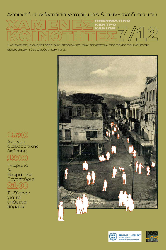 Το πρόγραμμα «Χαμένες Κοινότητες» φιλοδοξεί να αναζητήσει, να φωτίσει και να ξαναφέρει στο προσκήνιο ιστορίες ανθρώπων και ομάδων που σημάδεψαν την πόλη των Χανίων αλλά έμειναν στο περιθώριο του επίσημου αφηγήματος.