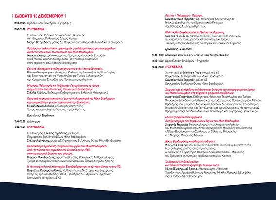 – την ερμηνεία του μουσικού έργου Θεοδωράκη από τη δεκαετία του ’60 έως σήμερα