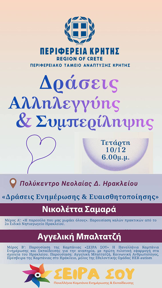 Παρουσίαση: Αγγελική Μπαλτατζή, Κοινωνική Ανθρωπολόγος, Πρέσβειρα της Καμπάνιας στο Ηράκλειο, μέλος HER-autism.