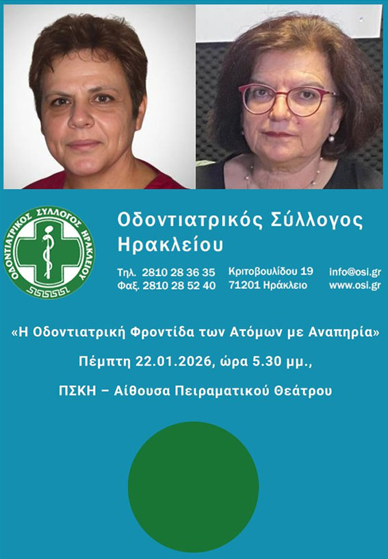 Την εκδήλωση διοργανώνουν ο Οδοντιατρικός Σύλλογος Ηρακλείου σε συνεργασία με την Οδοντιατρική Κλινική – Μονάδα Πρόληψης και Οδοντιατρικής Θεραπείας ΑμεΑ του Πανεπιστημιακό Γενικό Νοσοκομείο Ηρακλείου (ΠαΓΝΗ), αναδεικνύοντας την ανάγκη για ισότιμη πρόσβαση όλων σε ποιοτικές υπηρεσίες οδοντιατρικής φροντίδας.