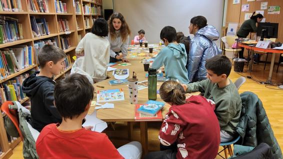 Στη συνέχεια προσπάθησαν να μαντέψουν το περιεχόμενο βιβλίων με ευφάνταστους τίτλους και έφτιαξαν όλοι μαζί με λέξεις που μοιράστηκαν τη δική τους ιστορία για ένα ξεχωριστό δώρο. Και οι τρεις δράσεις ολοκληρώθηκαν με ανταλλαγή βιβλίων.