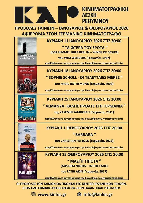 Η Κινηματογραφική Λέσχη Ρεθύμνου συνεχίζει το αφιέρωμα στον Γερμανικό Κινηματογράφο και προσκαλεί το κοινό σε μια ξεχωριστή κινηματογραφική βραδιά την