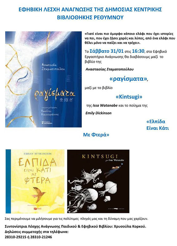 Από τη Δημόσια Κεντρική Βιβλιοθήκη Ρεθύμνου, με πίστη ότι οι ιστορίες που κουβαλάμε είναι εκείνες που μας κάνουν πραγματικά όμορφους.