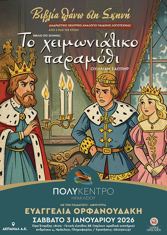 Το βιβλίο που ανεβαίνει επί σκηνής για τη συγκεκριμένη συνάντηση είναι το «Ένα χειμωνιάτικο παραμύθι» του Σαίξπηρ, σε μια προσέγγιση που φέρνει το κλασικό έργο κοντά στο σύγχρονο παιδικό και οικογενειακό κοινό.