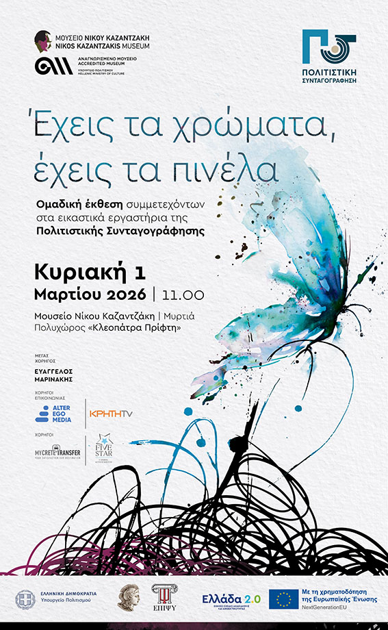 Η έκθεση θα φιλοξενηθεί στον Πολυχώρο του Μουσείου, στην Αίθουσα «Κλεοπάτρα Πρίφτη» του Μουσείου Νίκου Καζαντζάκη από 1 Μαρτίου έως 5 Απριλίου 2026 με ελεύθερη είσοδο.