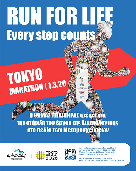 Ο Σύλλογος «Ορίζοντας», συνεχίζοντας με συνέπεια και όραμα το έργο του για τη στήριξη παιδιών και ενηλίκων που πάσχουν από καρκίνο και άλλες σοβαρές ασθένειες, ανακοινώνει με ιδιαίτερη χαρά τη συμμετοχή του Θωμά Τσιλιπήρα στον Μαραθώνιο του Τόκυο, την