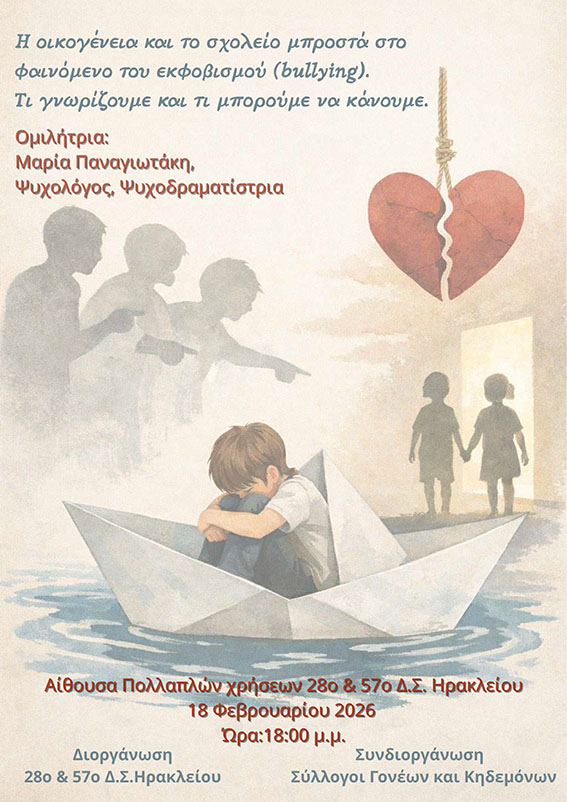 και ώρα 18:00, με επίκεντρο ένα από τα πιο κρίσιμα ζητήματα της σύγχρονης σχολικής ζωής: το φαινόμενο του εκφοβισμού.