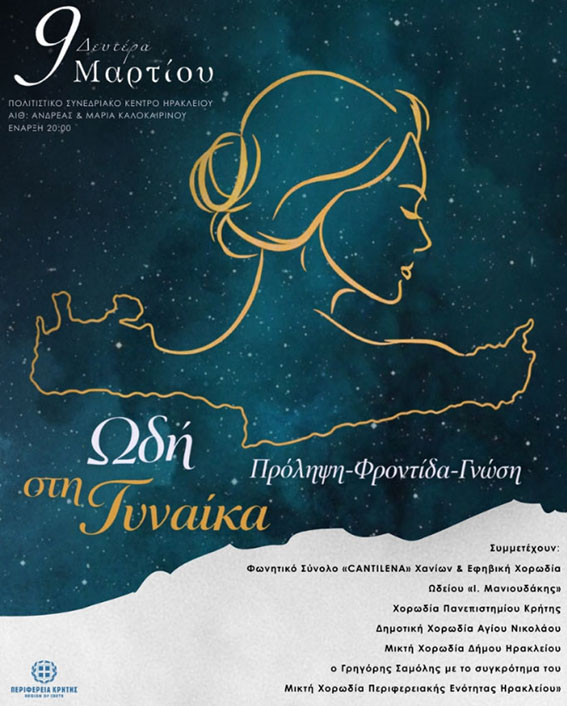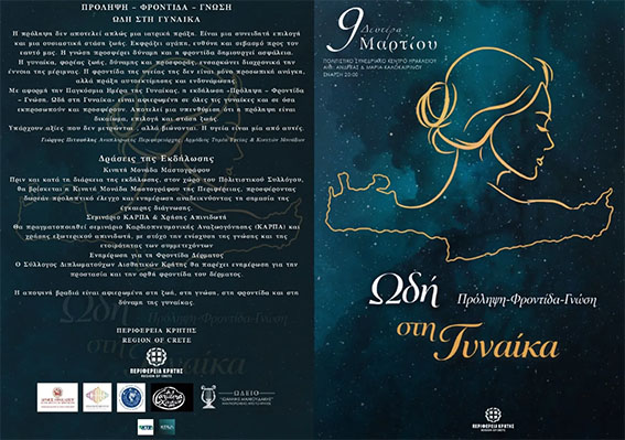 και ώρα 20:00 εκδήλωση με θέμα: «Πρόληψη – Φροντίδα – Γνώση. Ωδή στη Γυναίκα».
