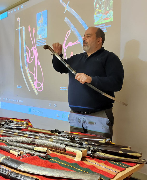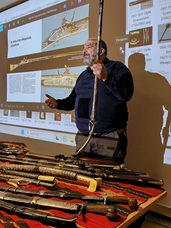 Με την αναλυτική και ζωντανή αφήγησή του, κατάφερε να καθηλώσει το κοινό, φωτίζοντας τη χρήση των όπλων και τη διαχρονική τους εξέλιξη.