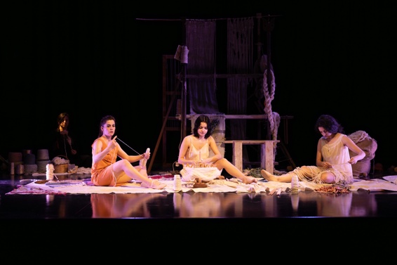 Σκηνικά – Κοστούμια: Μάρια Μπαχά, με τη Βενετία Γαλανάκη στα υφαντά και τους αργαλειούς