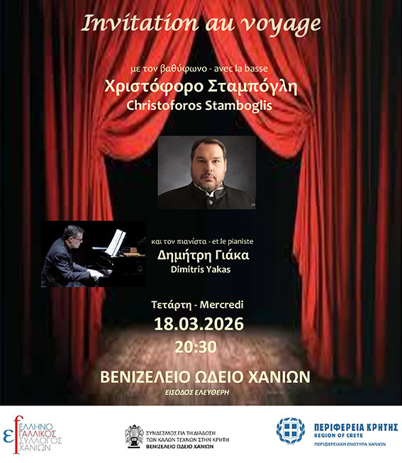 Ο Ελληνο-Γαλλικός Σύλλογος Χανίων σε συνεργασία με το Βενιζέλειο Ωδείο Χανίων διοργανώνουν, την