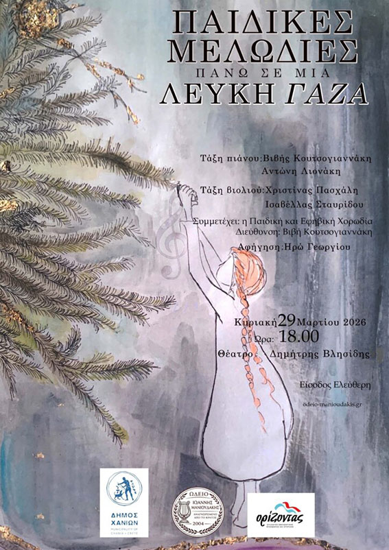 Το Ωδείο Ιωάννης Μανιουδάκης, σε συνεργασία με τον Δήμο Χανίων, προσκαλεί το κοινό σε μια ξεχωριστή μουσική εκδήλωση με πρωταγωνιστές τους μικρούς σπουδαστές του, την