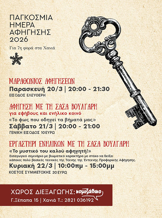 Με αφορμή την Παγκόσμια Ημέρα Αφήγησης, τα Χανιά φιλοξένησαν ένα ξεχωριστό τριήμερο αφιερωμένο στην τέχνη της προφορικής αφήγησης, από τις