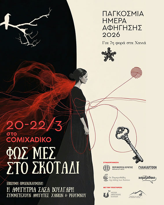 Οι «Παραμυθάδες της πόλης των Χανίων», σε συνδιοργάνωση με την Περιφέρεια Κρήτης, το Chaniartoon και το Comixadiko, τίμησαν τον θεσμό με μια σειρά δράσεων που κινήθηκαν γύρω από τη φετινή θεματική «Φως μες στο σκοτάδι», με επίκεντρο την ανθρώπινη εμπειρία, τη μνήμη και τη δύναμη των ιστοριών.