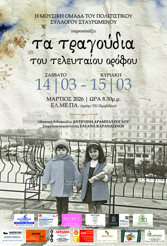 Μια ιδιαίτερη μουσική παράσταση παρουσιάζει η Μουσική Ομάδα του Πολιτιστικού Συλλόγου Σταυρωμένου, με τίτλο «Τα τραγούδια του τελευταίου ορόφου», προσκαλώντας το κοινό σε ένα ταξίδι γεμάτο μουσική, συναισθήματα και ανθρώπινες ιστορίες, το