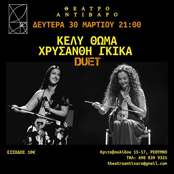 30 Μαρτίου: Duet με τις Κέλυ Θωμά – Χρυσάνθη Γκίκα