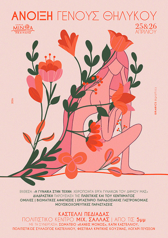 Ο Δήμος Μινώα Πεδιάδας τιμά τη γυναίκα, τη δημιουργία και την παράδοση μέσα από το διήμερο εκδηλώσεων με τίτλο «Άνοιξη γένους θηλυκού», το οποίο θα πραγματοποιηθεί το