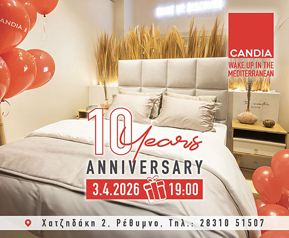 Με αφορμή τη συμπλήρωση 10 χρόνων λειτουργίας στο Ρέθυμνο, η Candia ετοιμάζει μια μεγάλη επετειακή εκδήλωση, η οποία θα πραγματοποιηθεί την