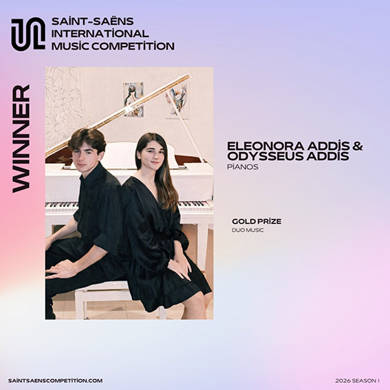 Ιδιαίτερη αναφορά αξίζει και στη διάκριση των Οδυσσέα Άντη και Ελεονόρας Άντη, οι οποίοι κατέκτησαν Gold Prize στην κατηγορία ντουέτων (πιάνο 4 χέρια) για όλες τις ηλικίες, αποδεικνύοντας τη δυναμική της συνεργασίας και της μουσικής επικοινωνίας.
