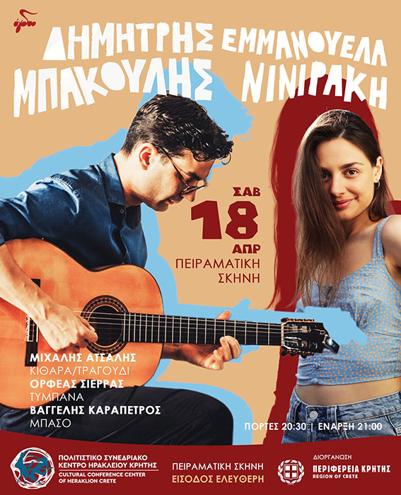 Το Ηράκλειο ετοιμάζεται να φιλοξενήσει μια ιδιαίτερη μουσική βραδιά γεμάτη συναίσθημα, αυθεντικότητα και δημιουργική σύμπραξη, καθώς ο Δημήτρης Μπάκουλης συναντά επί σκηνής την Εμμανουέλα Νινιράκη το