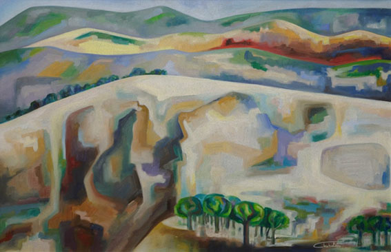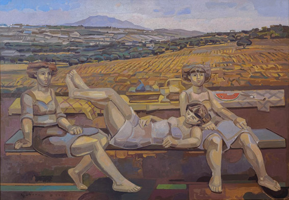 Βαρκούλες που αρμενίζουν, βουνά με χιονισμένες κορυφές, λιμάνια και σταθμοί, ανθισμένα λιβάδια και τοπία, ζευγάρια ερωτευμένα και ονειρικές νύχτες κάτω από τον έναστρο ουρανό συνθέτουν ένα πολυδιάστατο εικαστικό αφήγημα.