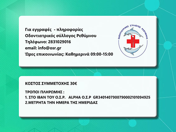 Πρόκειται για ένα υψηλού επιπέδου επιστημονικό σεμινάριο, το οποίο θα μοριοδοτηθεί με 7 Μόρια Επαγγελματικής Επιμόρφωσης Οδοντιάτρων (ΜΕΕΟ), προσφέροντας ουσιαστική γνώση και πρακτικά εργαλεία σε επαγγελματίες του χώρου.