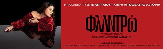 Μια από τις πιο εμβληματικές στιγμές της νεοελληνικής δραματουργίας έρχεται να συγκινήσει το κοινό της Κρήτης, καθώς η παράσταση «Φλαντρώ», σε σκηνοθεσία του Σωτήρη Χατζάκη, παρουσιάζεται στο Ηράκλειο, στο Κινηματοθέατρο Αστόρια, στις