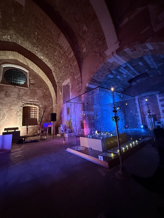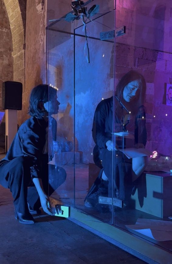 Ήταν πραγματικά μαγική η πρώτη στιγμή που μπήκαμε στον ιδιαίτερο χώρο του Αγίου Φραγκίσκου. Παρόλο που είχαμε μια αρχική ιδέα, η Στελλίνα άρχισε να δίνει λύσεις σε όλα με έναν σχεδόν μαγικό τρόπο. Είχε και την εξαιρετική ιδέα για το γυάλινο κουτί, που έδεσε απόλυτα με τη συνολική αισθητική της παράστασης.